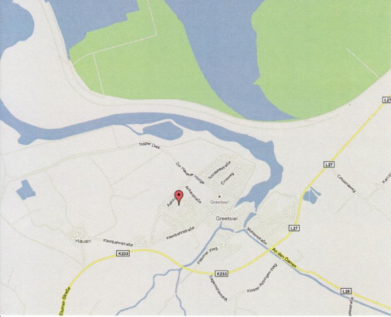 ![]() Entfernungen: Arzt 350 m Apotheke 550 m Bäcker 550 m Supermarkt 550 m Post 550 m Friseur 550 m Minigolf 700 m Spielplatz 700 m Touristinfo 750 m Schwimmbad 750 m Ortskern 950 m Siel 950 m Hafen 1000 m Restaurants ab 400 m